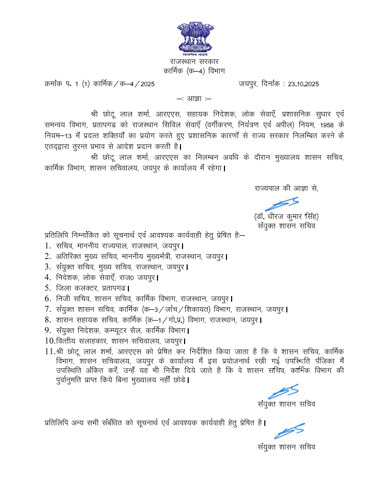 घटना पर संज्ञान लेते हुए राज्य सरकार ने तुरंत कार्रवाई की और बुधवार को एसडीएम छोटूलाल शर्मा को निलंबित करने के आदेश जारी किए। साथ ही, प्रशासनिक जांच के निर्देश भी दिए गए हैं ताकि पूरे मामले की पारदर्शी जांच हो सके।