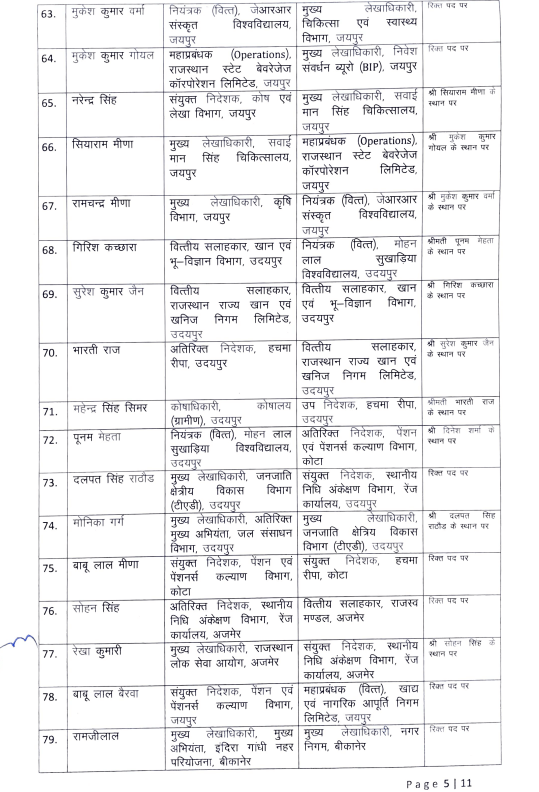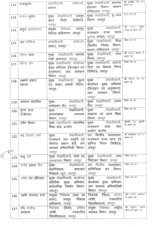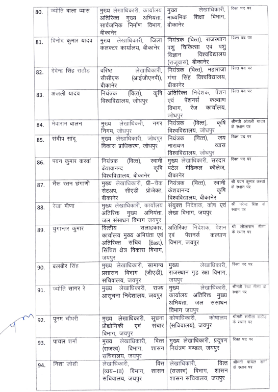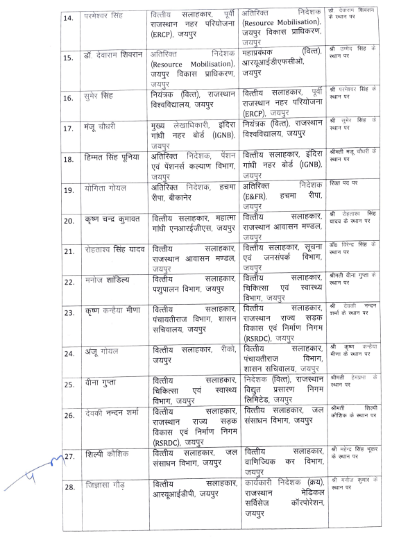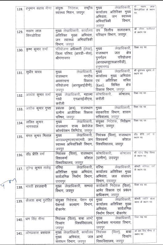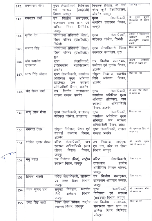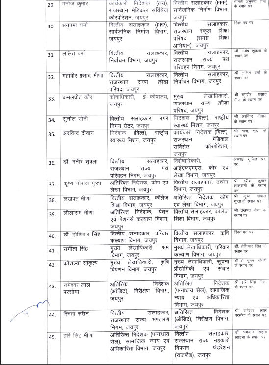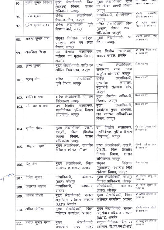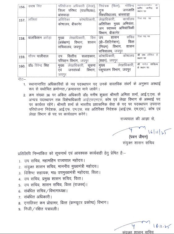 मुख्यमंत्री भजनलाल शर्मा के निर्देश पर राजस्थान के वित्त विभाग ने रविवार को लेखा सेवा में बड़ा प्रशासनिक बदलाव किया है। विभाग ने एक ही आदेश में 160 लेखा अधिकारियों के तबादले कर दिए। यह कदम प्रशासनिक कार्यों में गति लाने और विभागीय व्यवस्थाओं को अधिक सुव्यवस्थित करने के उद्देश्य से उठाया गया है। तबादला सूची में विभिन्न जिलों, संभागों और विभागों में कार्यरत लेखा अधिकारी शामिल हैं, जिनकी नई पदस्थापनाओं के आदेश तत्काल प्रभाव से लागू कर दिए गए हैं।