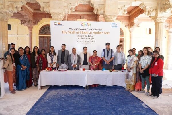 विश्व बाल दिवस के अवसर पर आमेर किले की ऐतिहासिक प्राचीर रविवार को बच्चों की कल्पनाओं, रंगों और उनकी आवाज़ों से जीवंत हो उठीं। “The Wall of Hope – Listen to the Future | My Day, My Right” शीर्षक से आयोजित इस विशेष कार्यक्रम का उद्घाटन राज्य मंत्री डॉ. मंजू बाघमार ने किया। बच्चों ने पेंटिंग, स्लोगन, रैंप वॉक, क्विज़ और नुक्कड़ नाटक के माध्यम से बाल अधिकारों से जुड़े अपने विचार प्रभावशाली तरीके से मंच पर रखे।