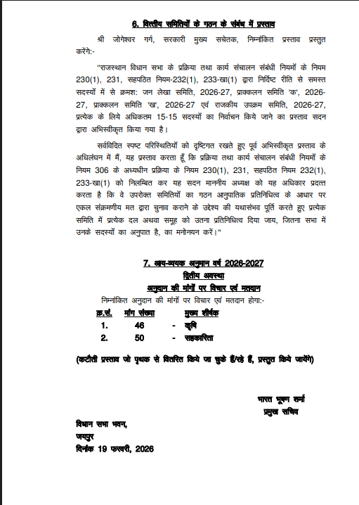 विधानसभा की आज की कार्यसूची के अनुसार सहकारिता विभाग और कृषि विभाग की अनुदान मांगों पर विस्तृत चर्चा होगी। इस दौरान पक्ष और विपक्ष के विधायक विभागीय योजनाओं, किसानों से जुड़े मुद्दों, सहकारी संस्थाओं की स्थिति तथा कृषि विकास से संबंधित विषयों पर अपने विचार रखेंगे। चर्चा के बाद संबंधित मंत्री विभागों की ओर से जवाब देंगे और अनुदान मांगों को सदन की स्वीकृति के लिए प्रस्तुत किया जाएगा।