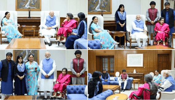 नई दिल्ली। राजस्थान की पूर्व मुख्यमंत्री वसुंधरा राजे ने सोमवार 9 मार्च को अपने पूरे परिवार के साथ प्रधानमंत्री नरेंद्र मोदी से दिल्ली में उनके सरकारी निवास पर मुलाकात की। इस दौरान उनके साथ उनके पुत्र और सांसद दुष्यंत सिंह, बहू निहारिका तथा पोते-पोती भी मौजूद रहे। प्रधानमंत्री नरेंद्र मोदी ने सभी से आत्मीय बातचीत की और पारिवारिक विषयों के साथ-साथ राजस्थान की राजनीति से जुड़े मुद्दों पर भी चर्चा हुई।